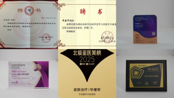 作为中国非公立医疗机构协会皮肤专业委员会委员、重庆市医学会医学美容与美容学专业委员会委员,毕建军医生始终参与行业规范的构建与技术的推广。他身兼美团北极星医生、新氧绿宝石皮肤医生等权威平台认证专家,还是美拉美超声刀、思嘉丽黄金超微针的规范化操作培训导师,Thermage®、半岛超声炮等前沿设备的官方认证医师,将自己的诊疗经验倾囊相授,推动行业技术的标准化发展。